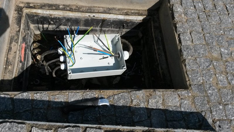 Vyměnili jsme rezavé jádra elektrokrabic venkovního osvětlení, které byly dlouhodobě zatopené vodou a zkratovaly sytém osvětlení. Nové elektrokrabice jsme zároveň zaizolovali gelovou směsí, aby nedocházelo k jejich opakovaným zatečením a s tím spojeným častým výpadkům venkovního osvětlení. Prozatím jsme takto vyměnili 4 ks elektrokrabic z celkového počtu přesahující 30 ks. V těchto pracech budeme i nadále pokračovat.