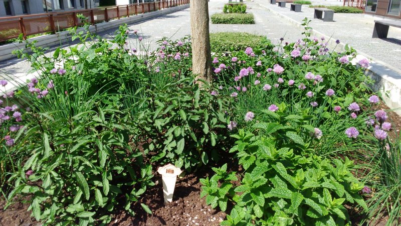 Květníky byli osazeny zejména mátou, pažitkou, tymyánem a jahodami.